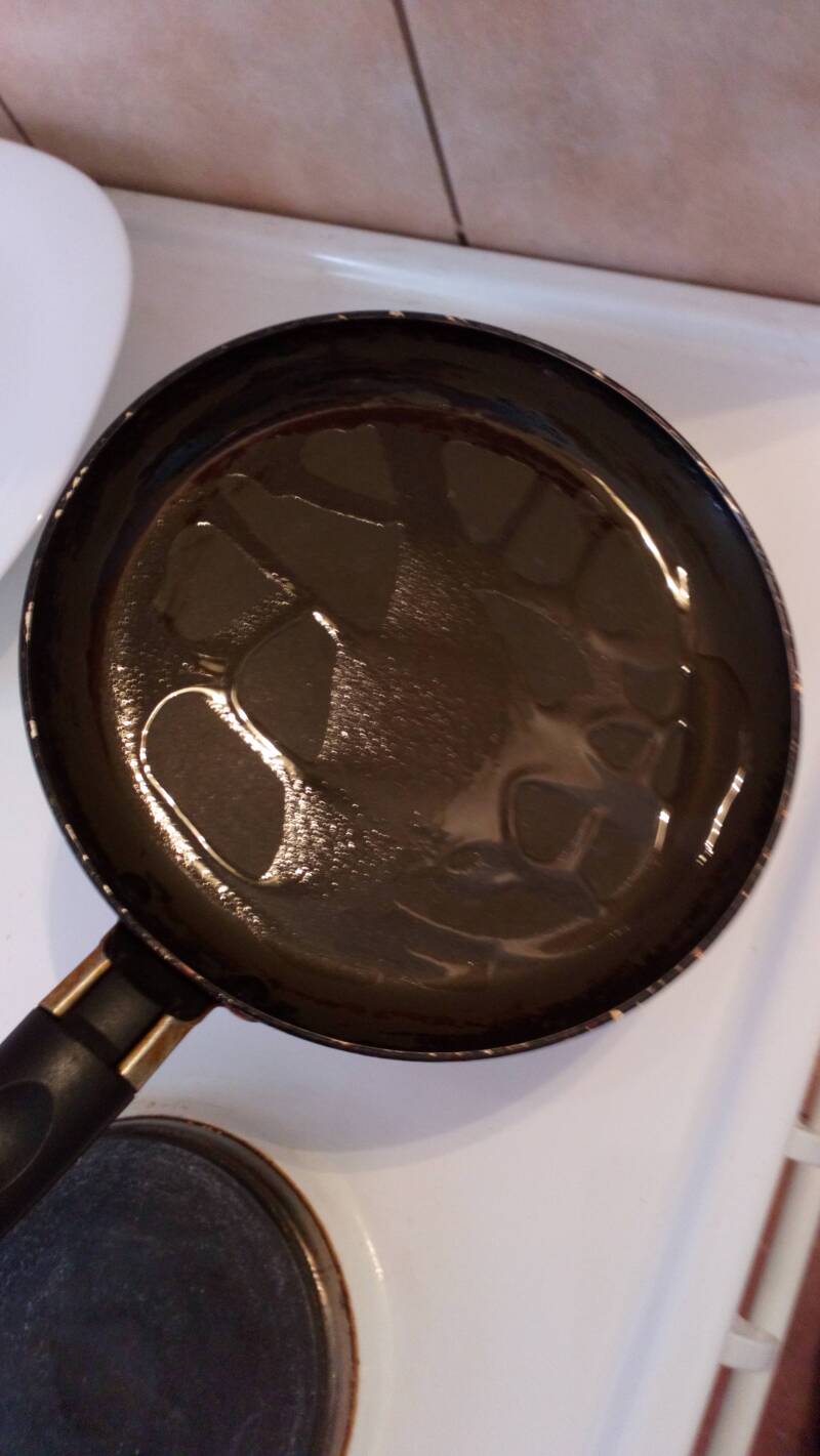 U tiganj stavimo jednu kafenu kašičicu ulja i ostavimo da se zagreje.