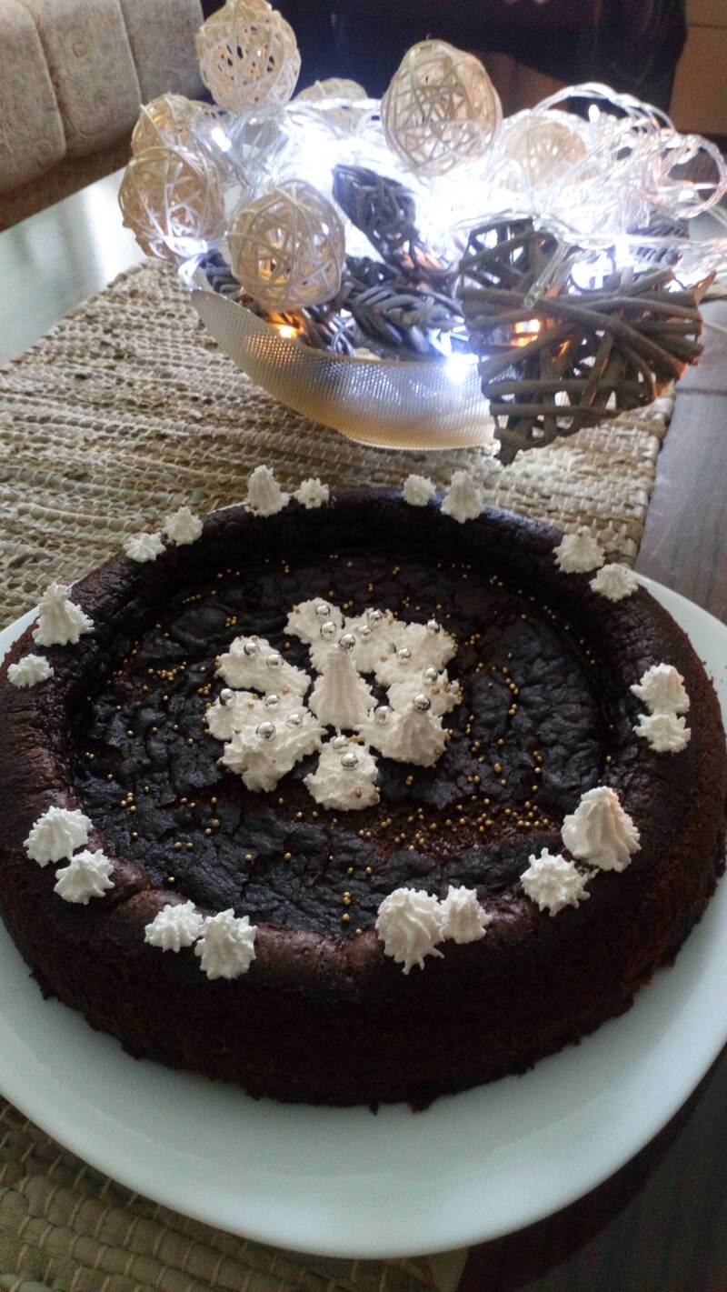 Napravila sam šlag i ukrašavala, ukrašavala...onda dodala malo srebrnih i zlatnih jestivih kuglica i pretvorila, barem vizuelno, kremasti čokoladni kolač u kolač koji sam nazvala "seoska mlada".