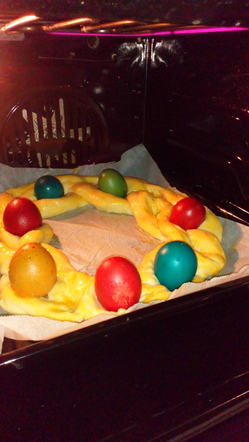 Koliko sam uspela da istražim, na ovaj način se u Italiji i u Grčkoj od slatkog testa formira slatki uskršnji hleb.