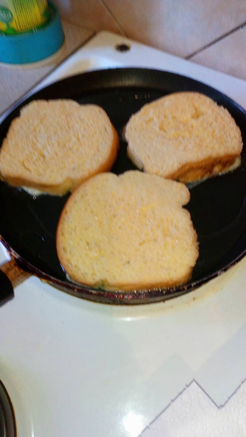 Umočimo krišku hleba u umućeno mleko sa jajma, ocedimo i stavimo u zagrejan tiganj.