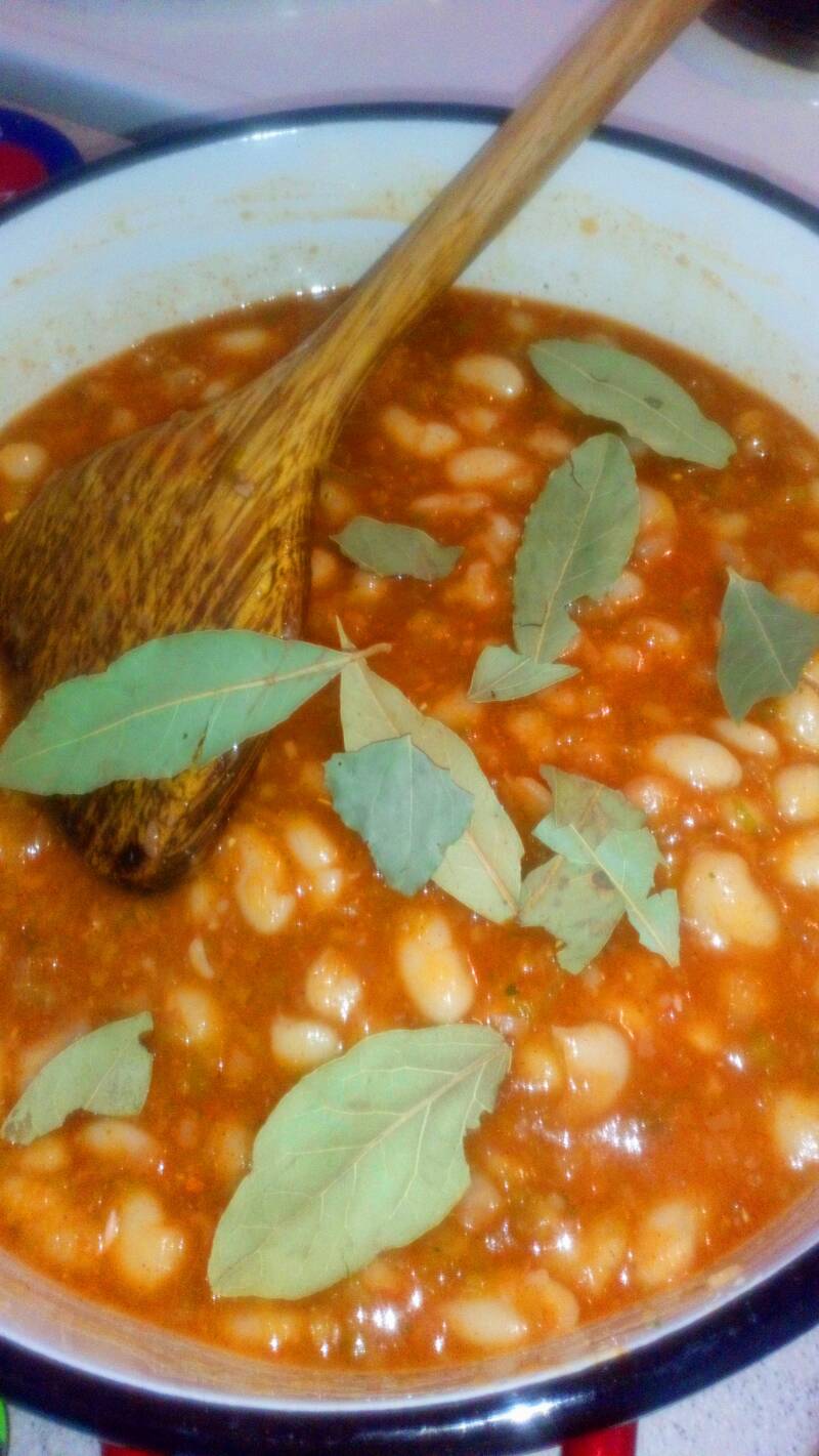 Nakon 10 minuta u praziluk sipamo jednu supenu kašiku aleve paprike i dobro promešamo. Tome dodamo pasulj i onoliko vode u kojoj se kuvao pasulj, koliko želimo da jelo bude gusto. Ja volim da bude gušće pa dodajem manje vode.