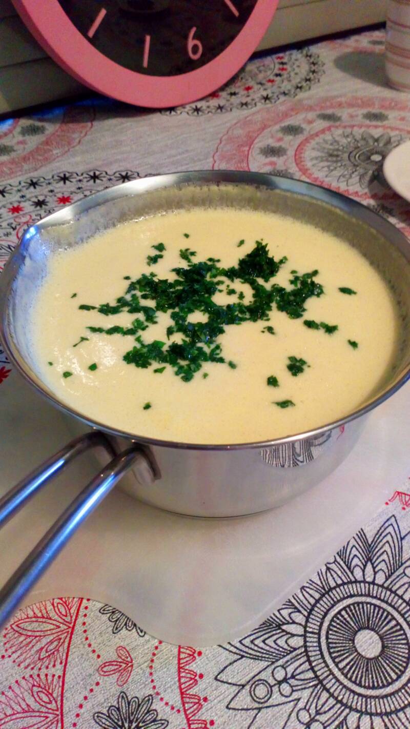 Kada se ulje zagreje dodamo prethodo razmućene sastojke u mleku I kuvamo uz neprestano mešanje, sve dok ne baci ključ.