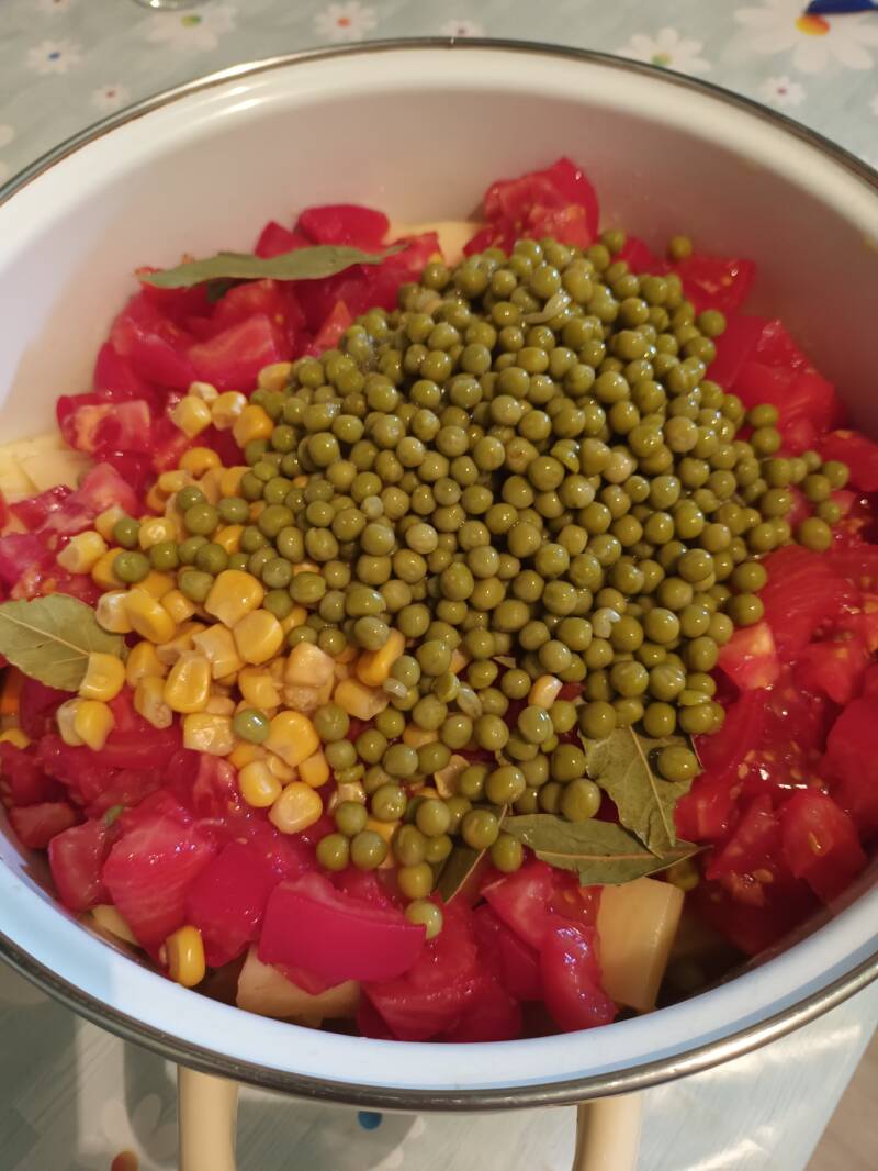 Dodala sam i malo slatkog kukuruza iz konzerve i jednu šargarepu jer sam ih imala u frižideru, inače u originalnom receptu se ne pominju.