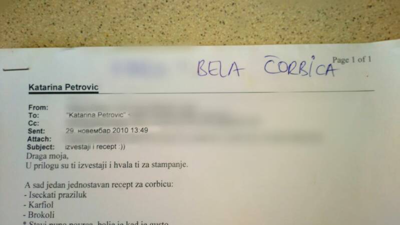Ovaj recept mi je poslala moja prijateljica M.Dj. još 2010. godine i to putem e-maila.